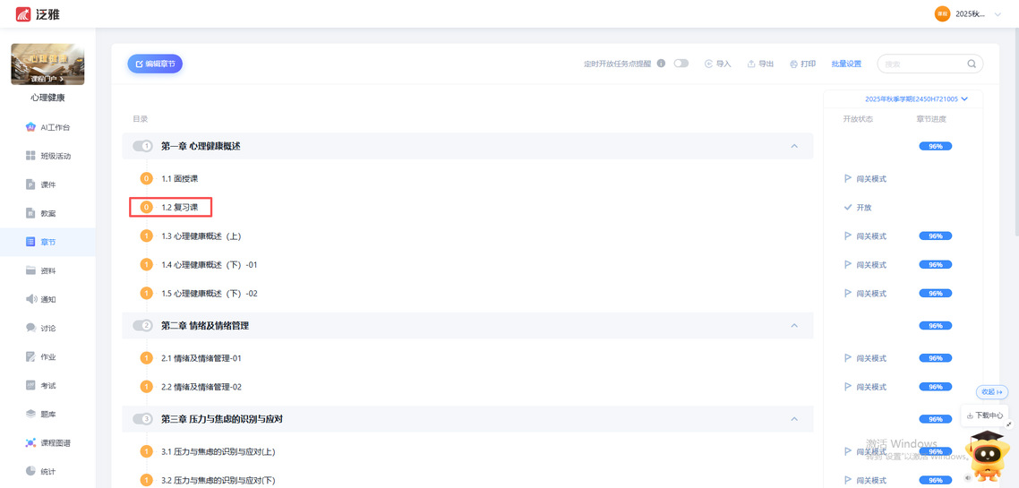 1.心理健康教育:1.2复习课